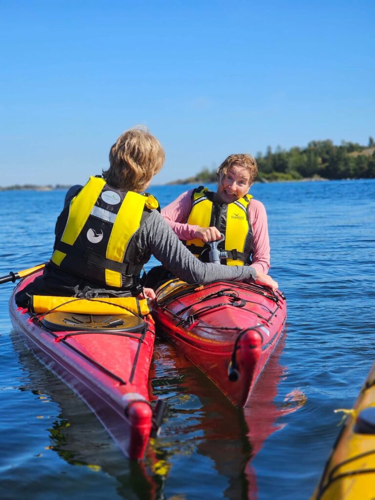 Vi har paddlat Kajak i princip hela våra vuxna liv och utbildade oss till instruktörer 2004 när kajakuthyrningen och gården fortfarande drevs av Lindas föräldrar.